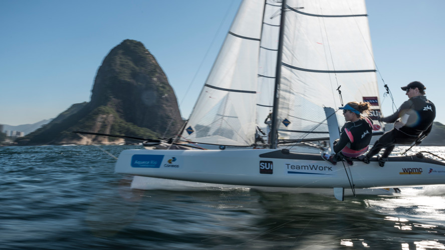 Le Nacra 17 est un catamaran de compétition, série internationale en 2012, d’environ 17 pieds de long (5,25 m) et d’une superficie totale de voile de 37 mètres carrés, permettant au bateau d’atteindre des vitesses extrêmement élevées.